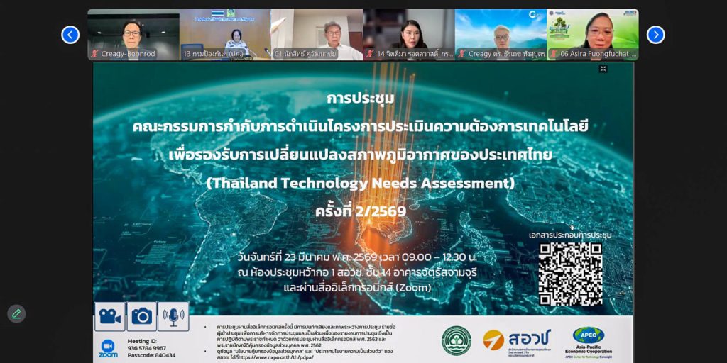 On 23 March 2026, the Office of National Higher Education, Science, Research and Innovation Policy Council (NXPO) – APEC Center for Technology Foresight (APEC CTF) in collaboration with the Department of Climate Change and Environment (DCCE), convened the 2nd Steering Committee Meeting for the Thailand Technology Needs Assessment (TNA) Project. The meeting was chaired by Dr. Surachai Sathitkunarat, President of NXPO, Executive Director of APEC CTF, and members of the project team.