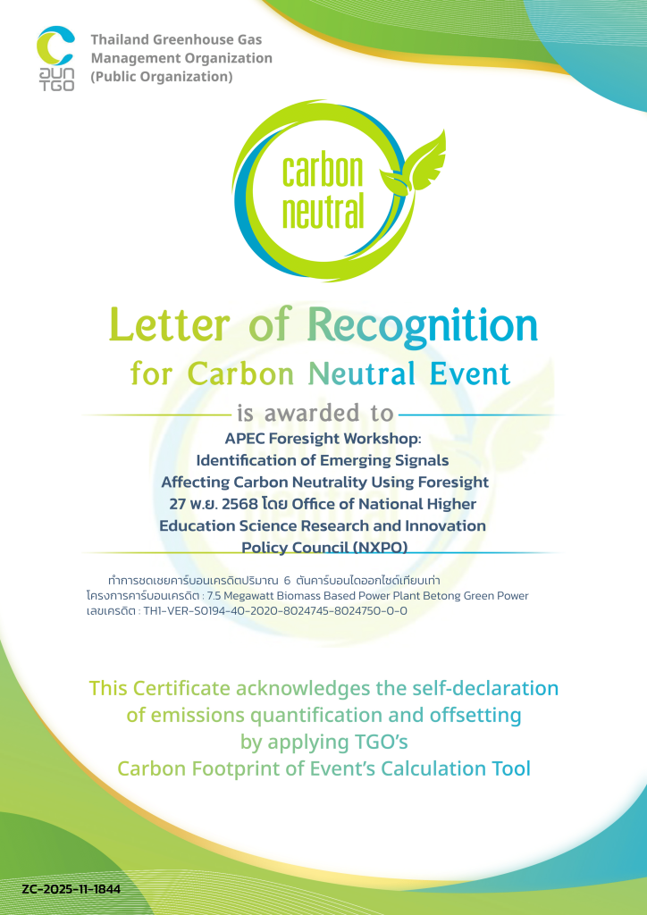 APEC FORESIGHT WORKSHOP ACHIEVES CARBON NEUTRAL EVENT RECOGNITION (TGO)